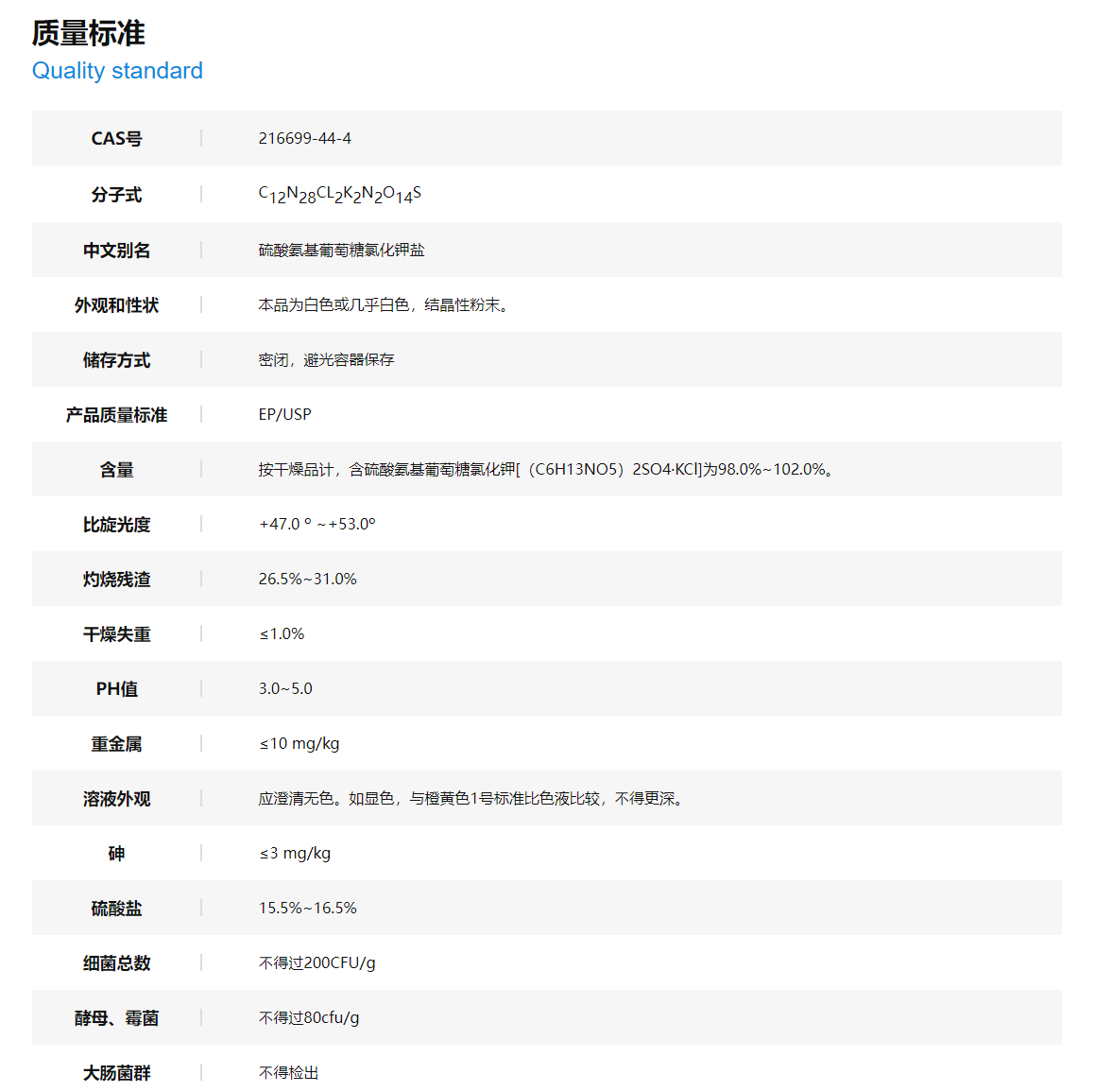 中文名稱:硫酸氨基葡萄糖氯化鉀鹽